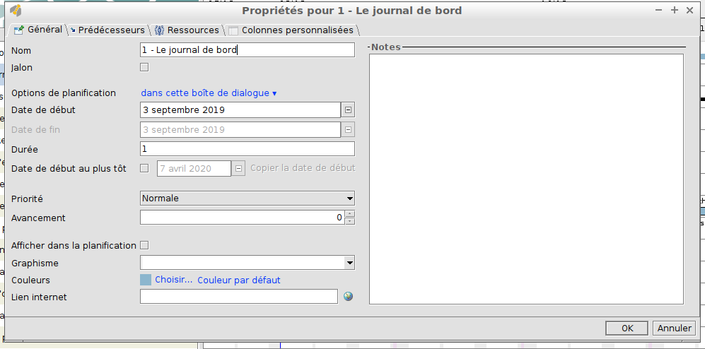 Puis vous modifiez la case avancement entre 0 et 100