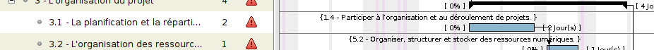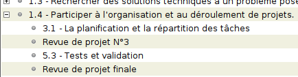 Ici, pour la tâche 3.1 - La planification et la répartition des tâches vous êtes évalués sur la compétence 1.4 - Participer à l'organisation et au déroulement de projets.