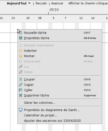 Pour renseigner l'avancement d'une tâche, clique droit sur la tâche concernée puis "Propriétés tâche"
