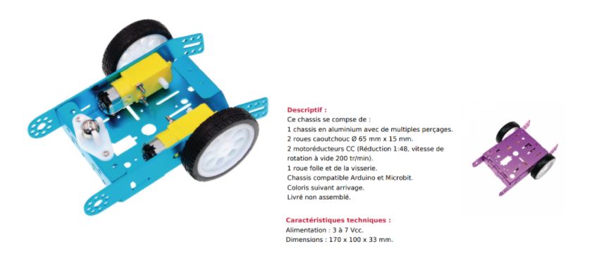 La base robotique pour la technologie Arduino, au collège est rouge avec deux motoréducteurs à CC.
