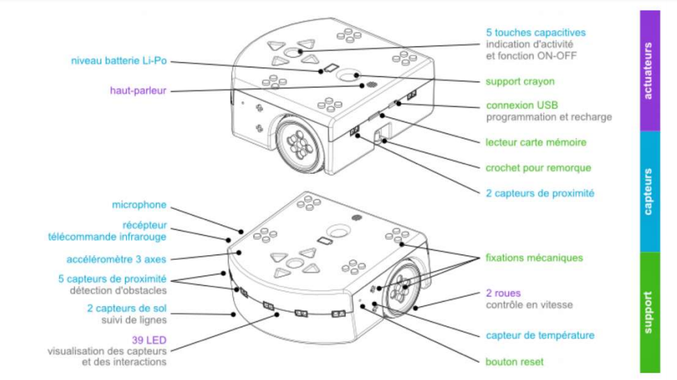 Avec les images légendées ci-dessous vous devez réaliser la chaîne d'information et la chaîne d'énergie complète du robot Thymio. Votre document est ( ICI ).