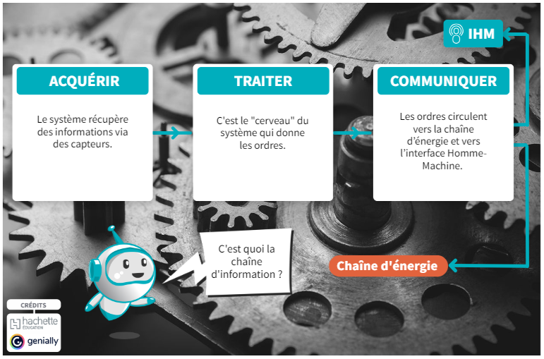 à comprendre la chaîne d'énergie et d'information avec différents Genially