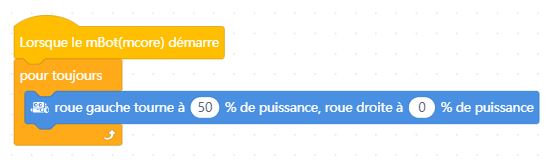 Exemple pour votre premier programme (Rotation d'une roue de la base robotique) :