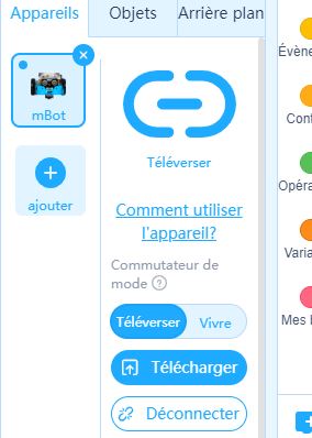 Nous pouvons maintenant téléverser le programme dans la carte Mbot. Connectez votre Mbot à l'ordinateur avec le cable USB puis cliquez sur le bouton "Connecter"