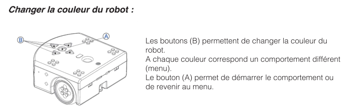 Vous devez renseigner la fiche du comportement du robot suivant sa couleur avec l'aide de la liste ci-dessous :