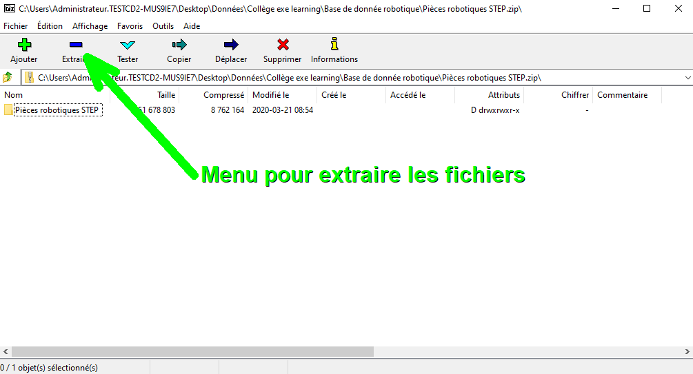 Activité N°1 : Extraire la bibliothèque de pièces